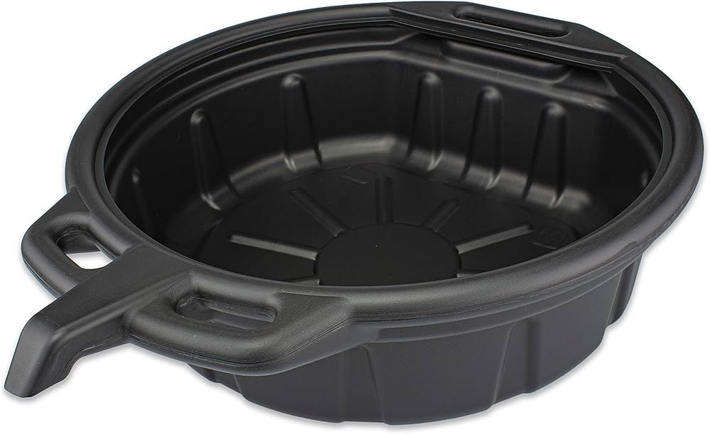 Although somewhat large, this Drainmaster pan boasts a 15-quart capacity, allowing for multiple oil changes before needing to be emptied. It is meticulously designed with a screw-on cap to prevent spills and a large handle for easy transportation. Made from robust plastic, this pan is durable but the integrated funnel might get clogged over time. Its higher price range might be worth it for those seeking large storage capacity and appreciating its portability. To buy this product, click here.